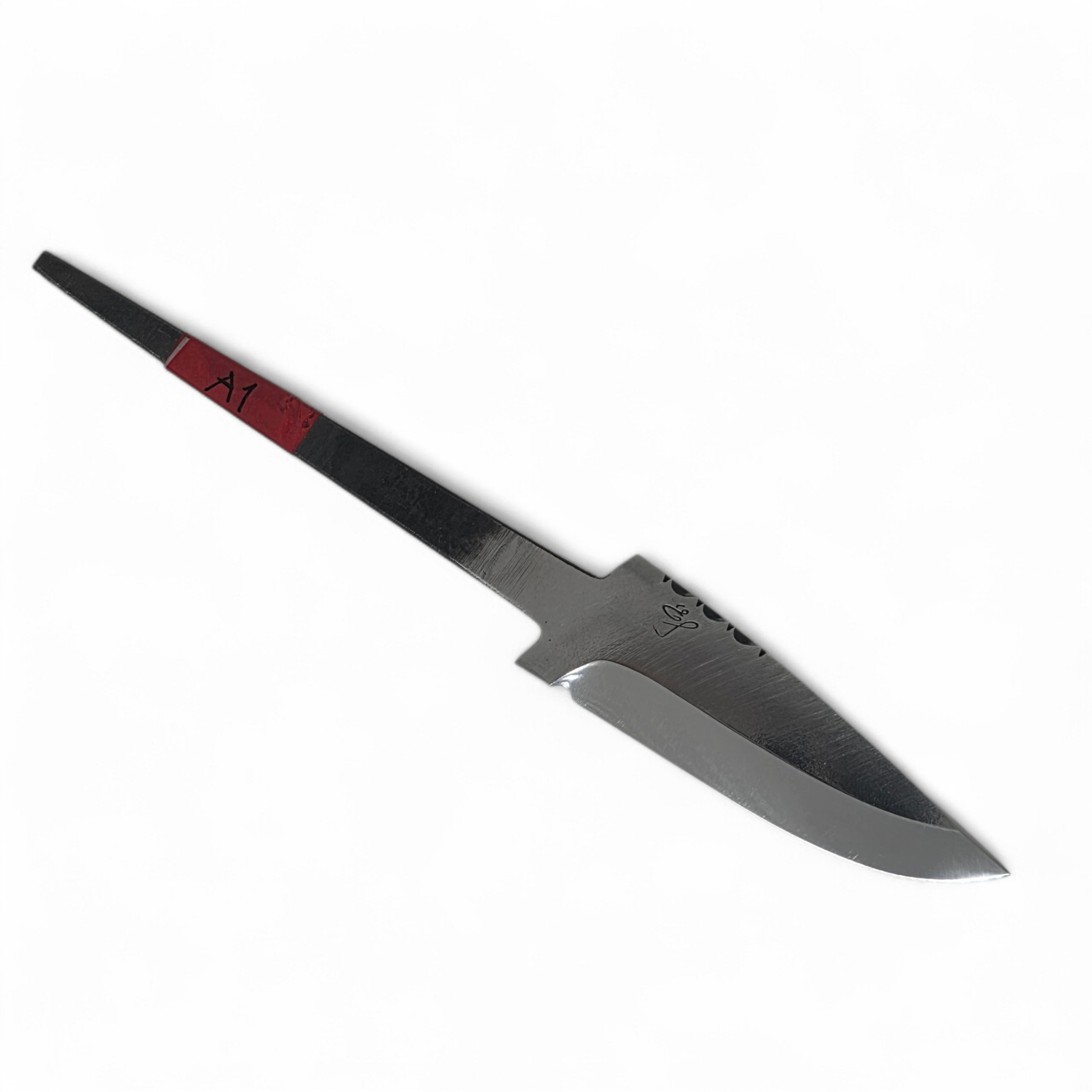 Handsmidda knivblad med arbetad design. Praktiska kolstålsblad i lyxigt utförande för dig som vill göra en påkostad kniv med ett rejält bruksblad.